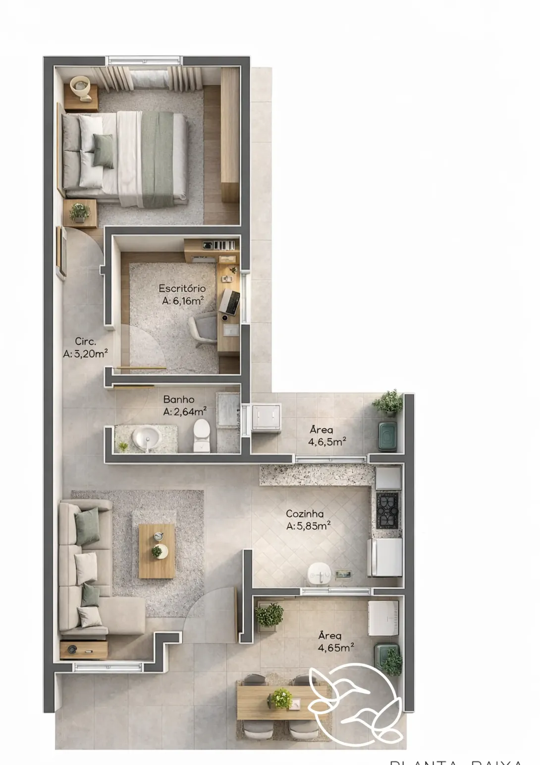✔️ 50,7m² de área construída