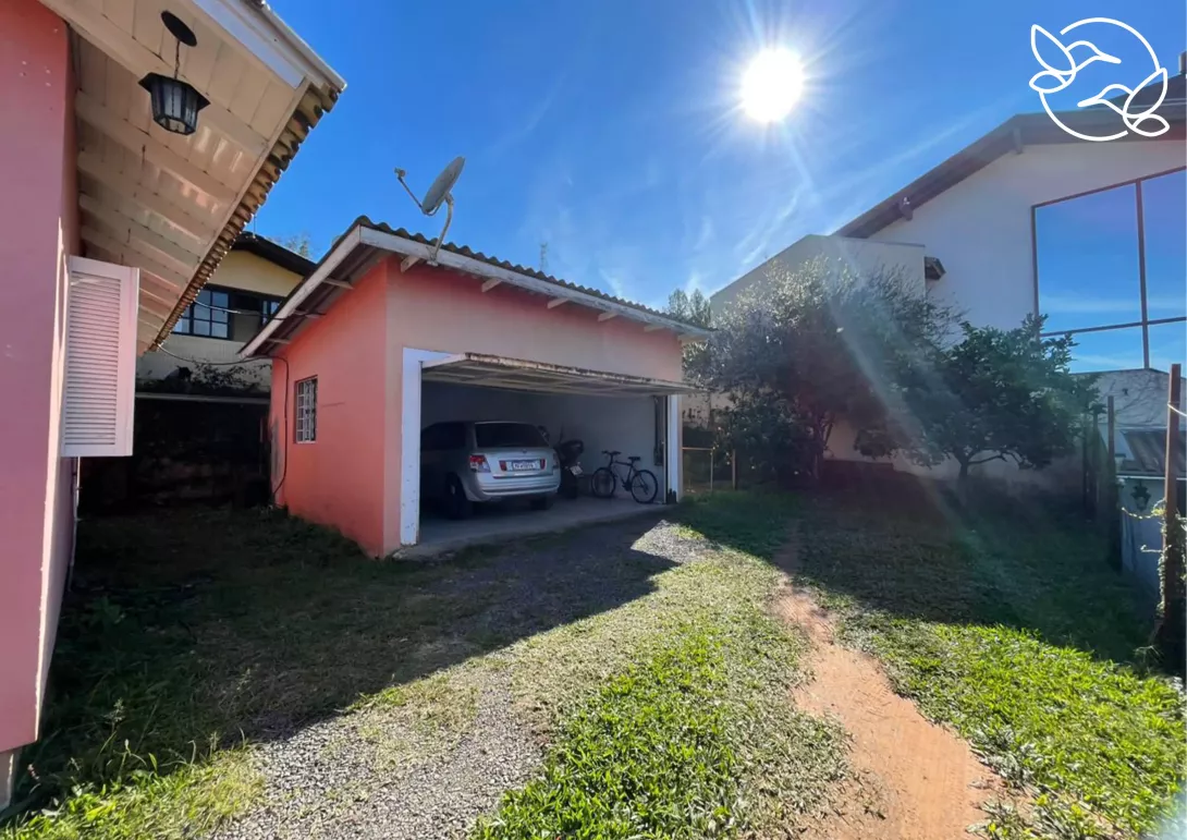 Garagem fechada para 2 carros e pátio totalmente cercado. Casa com poço e muito espaço para você personalizar e valorizar do seu jeito.